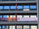 Depuis le lundi 6 avril la façade de nos locaux affiche le message de la campagne