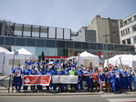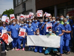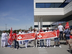Une centaine de travailleuses et travailleurs se sont rassemblé·es devant l'entrée des deux hôpitaux dans une ambiance calme mais déterminée.